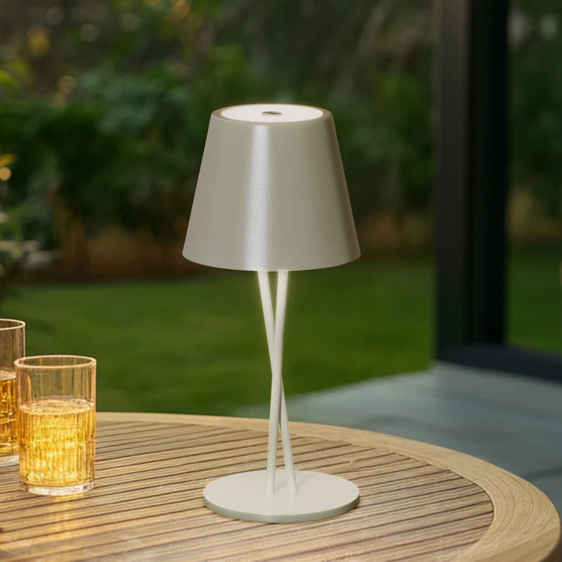 Lámpara de mesa LED recargable Janea con práctico regulador de intensidad táctil Descubra la elegancia y funcionalidad de la lámpara de mesa LED recargable Janea, que no sólo es un HighLight visual con su moderno diseño, sino que también está predestinada para su uso en una gran variedad de entornos gracias a su grado de protección IP54. La fuente de luz LED integrada no sólo promete una larga vida útil, sino también una iluminación energéticamente eficiente que puede ajustarse intuitivamente a la atmósfera deseada gracias al regulador táctil integrado. Datos técnicos batería - 3,7V 3600mA Li-Ion - duración de la batería 6h - tiempo de carga de la batería 5h
