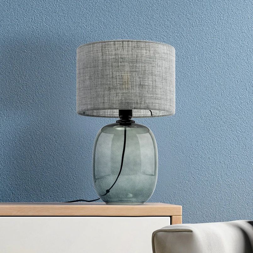 Atemporal lámpara de mesa Melody con pantalla de tela gris grafito y base de cristal gris ahumado La lámpara de mesa Melody es una acogedora fuente de luz adicional. La base bulbosa es de cristal transparente gris ahumado y tiene una pantalla cilíndrica clásica de tela gris grafito. En la pantalla se puede insertar una Lamp E27. Equipada con un interruptor en el cable del enchufe.