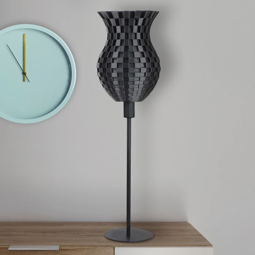 Lámpara de mesa oscura de mimbre con efecto luminoso único y pantalla de biomaterial