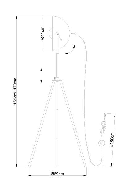 Lámpara de pie trípode Lenn en color negro y áureo