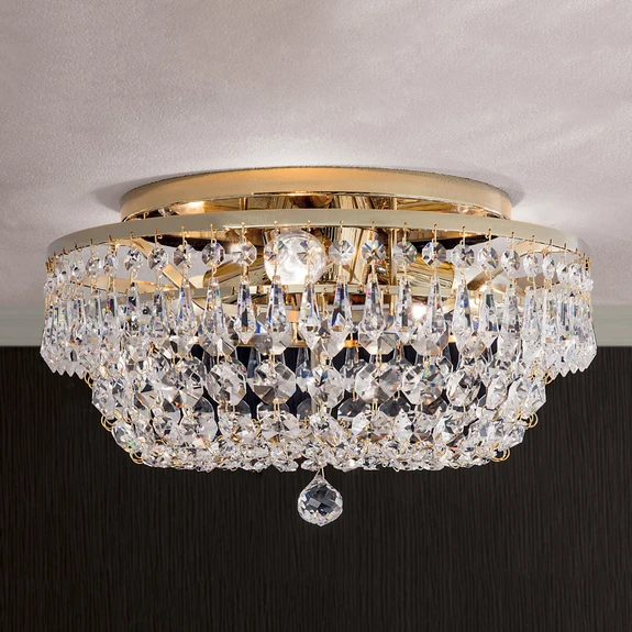 SHERATA - Una lámpara de techo lujosa con cristales Schöler, plateada en oro de 24 quilates