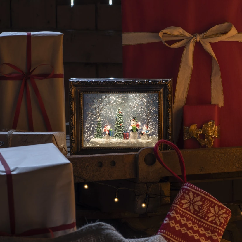 Lámpara decorativa LED portarretratos con muñecos de nieve