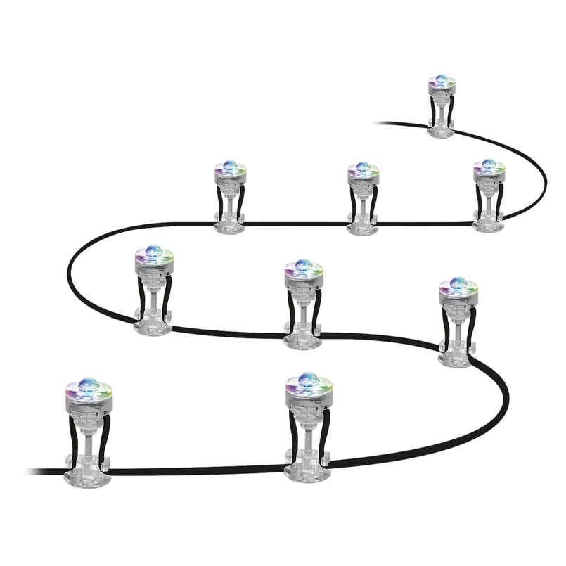 Nueve lámparas LEDVANCE SMART+ WiFi Garden Dot inteligentes para una iluminación de acento llena de color La lámpara con pica LED Garden Dot proporciona una iluminación de acento llena de color en el exterior. Las nueve luces cableadas en serie están fabricadas en policarbonato transparente. Se alimentan a través de una conexión común de 230 V y se integran mediante una caja controladora con el módulo LEDVANCE SMART+ WiFi. Este último permite conectar las luminarias a un smartphone/tablet a través de WiFi para permitir un control Smart mediante App o comando de voz. A través de los accesorios están disponibles conjuntos adecuados de tres para la expansión a un grupo máximo de 18 unidades. Datos técnicos / compatibilidad: - Volumen de suministro: nueve luminarias, un transformador enchufable de 230 V a 5 V IP44, una caja controladora, cableado - Controlable con la App LEDVANCE SMART+ WiFi (disponible de forma gratuita para iOS y Android); permite preajustes y automatización - Se puede controlar a través de Google Assistant o Amazon Alexa - Atenuable - Colores de la luz: aprox. 16 millones de tonos de color - Protocolo inalámbrico: WiFi 2,412 - 2,484 GHz Los nuevos productos LEDVANCE, anteriormente conocidos bajo la marca OSRAM, combinan los más altos estándares de calidad con un diseño Mod.