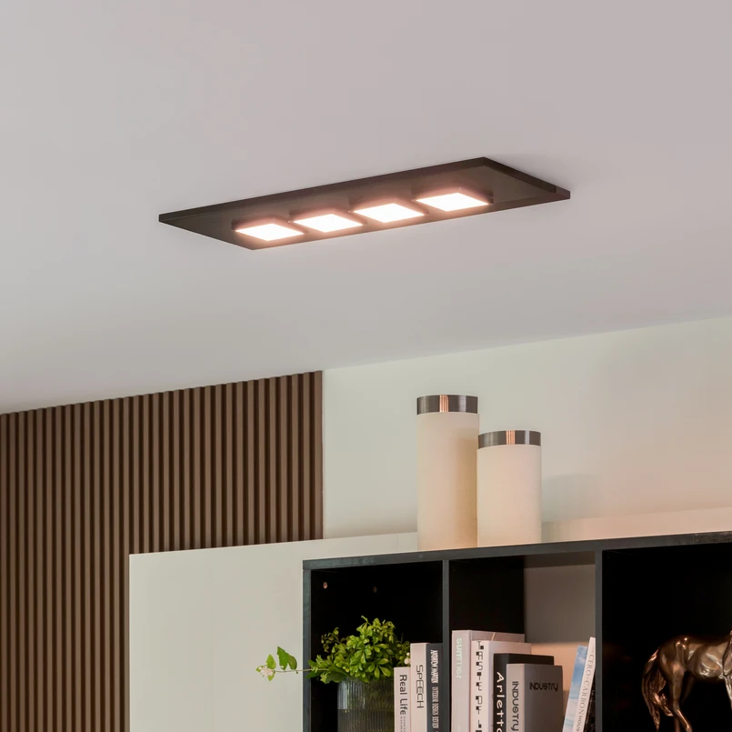 Lámpara LED de techo Esteria alargada y de 4 luces con un diseño exclusivoCon esta lámpara LED de techo de bonito diseño podrá dar un toque especial a su interior. El modelo Esteria emite luz en un acogedor color de la luz blanco cálido. La lámpara es sinónimo de una experiencia vital única y un diseño acertado con la calidad de la marca Lucande. Está equipada con cuatro fuentes de luz fácilmente reemplazables que proporcionan una luz acogedora. La lámpara en los colores negro y grafito es de aplicación universal y puede integrarse fácilmente en diversas áreas de aplicación. El modelo Esteria destaca por su estilo moderno, que tiene su origen en un concepto de Ingo Thiele, y no sólo impresiona con un bello juego de luces, sino que también cumple una función decorativa.