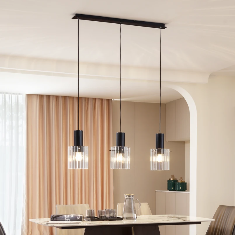 Eirian Lámpara colgante de 3 luces con pantallas de cristal de diseño moderno Esta lámpara es la elección ideal para su hogar. El plafón tiene un gran estilo y se integra maravillosamente en cualquier habitación. Un diseño excelente y una experiencia de vida única caracterizan esta lámpara colgante de la marca Lucande. La luz puede regularse a su gusto mediante un atenuador externo (no incluido). Puede utilizar fuentes de luz con una base E27 en esta lámpara de techo. La luz negra crea un ambiente acogedor y queda bien en cualquier habitación. Esta lámpara realza el aspecto general de su interior. La lámpara de techo le permite realzar aún más el aspecto de su sala de estar.