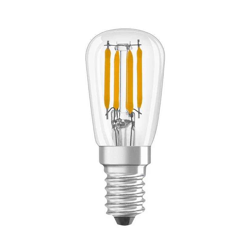 Lámpara LED para frigoríficos T26 2,8W, transparente con óptica de filamento, blanco cálido