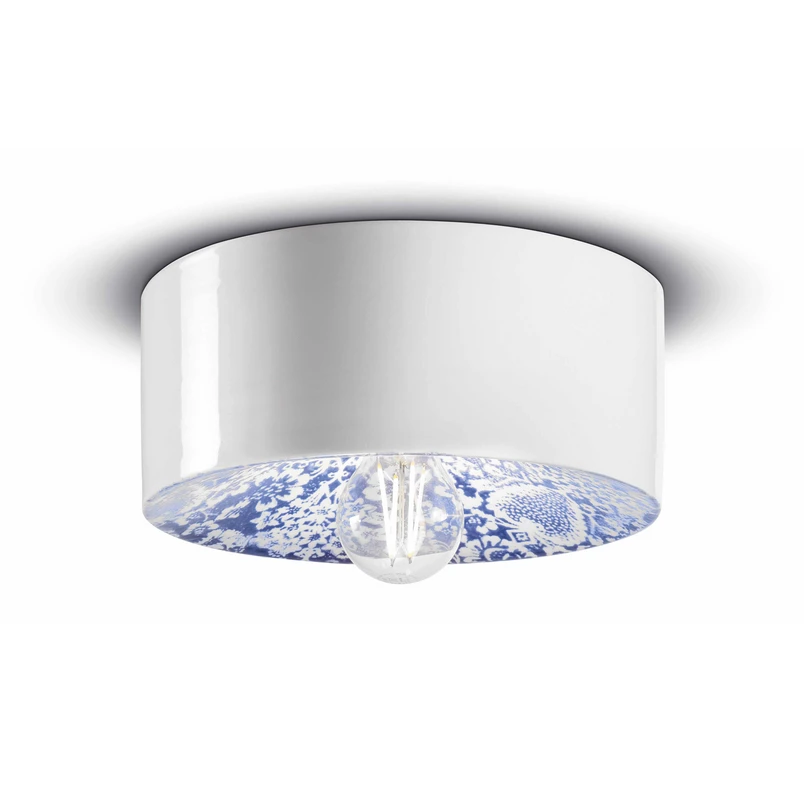 PI plafón redondo con motivo floral decorativo El plafón PI está decorado con un bonito motivo floral en la parte superior e interior de la pantalla. El exterior es de color blanco neutro. Este inusual diseño hace que PI no sólo sea una atractiva fuente de luz, sino que también sirva como elemento decorativo. El plafón es de cerámica y queda especialmente bien encima de la mesa del salón o del comedor. PI se ha fabricado a mano en Italia.
