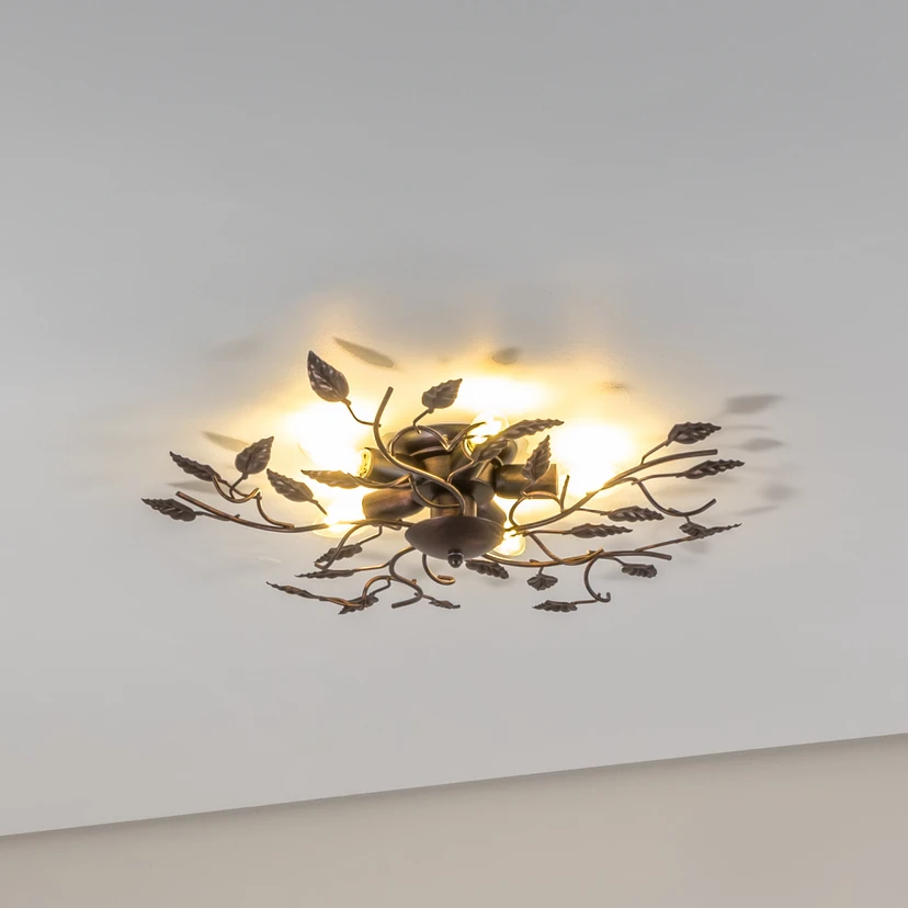 El plafón Cernecchio, de 5 luces, en elegante bronce, combina la elegancia atemporal con la versatilidad funcional. Fabricado en hierro de alta calidad y producido en Europa, esta lámpara destaca por su construcción robusta y su atractivo diseño. Las cinco fuentes de luz proporcionan una iluminación uniforme en salones y comedores, así como en pasillos, creando un ambiente acogedor.