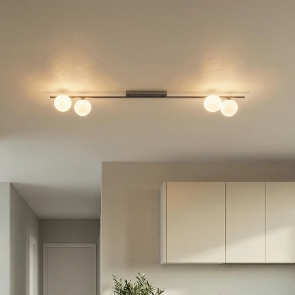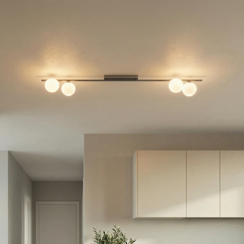 Plafón Imelo, marrón, 4 luces, cristal, longitud 140 cm