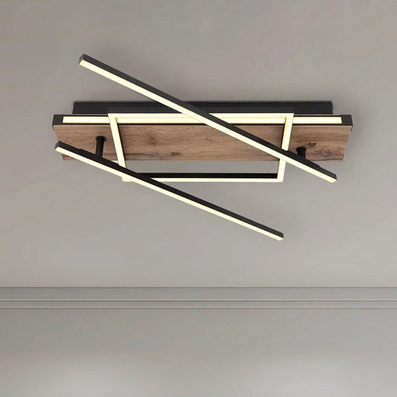 Plafón LED Colli versátil y regulable El plafón LED Colli está fabricado en madera MDF oscura, metal y aluminio, y confiere a cualquier estancia un ambiente moderno y elegante. Los LED de color blanco cálido emiten una luz que no deslumbra. La luz se puede regular en varios niveles mediante el interruptor de pared. El plafón Colli dispone de una práctica función de memoria y los marcos se pueden girar y bascular. Se puede elegir entre tres niveles: Luz principal, LED en el marco o ambos juntos.