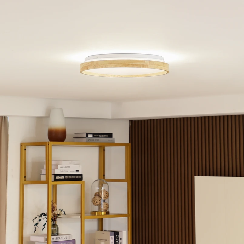Plafón LED Mirren, una luminaria inteligente fabricada en madera El plafón LED Mirren es una opción atractiva para estancias modernas. Con su diseño redondo de madera y plástico de alta calidad en color blanco y una función RGBW (3.000 K - 6.500 K + multicolor), puede ajustar el color y el brillo de la luminaria según sus necesidades. Se controla a través de la aplicación gratuita Tuya (disponible para iOS y Android), que permite un manejo sencillo y cómodo. La posibilidad de atenuar el brillo hace que esta luminaria sea ideal para un ambiente acogedor o una luz brillante para un entorno de trabajo productivo. La tecnología LED garantiza una alta eficiencia energética y una larga vida útil. La Mirren es una opción excelente para salones, dormitorios u oficinas que requieran un diseño moderno y funciones versátiles.