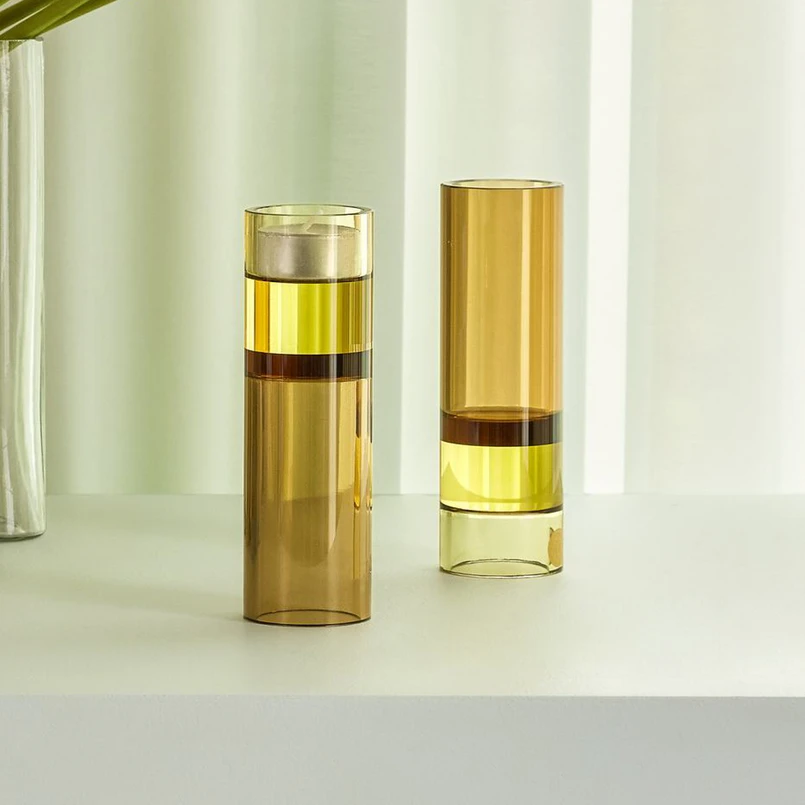 Portavelas Astro - también puede utilizarse como jarrón Portavelas y jarrón de cristal en uno. Fabricado en cristal, esta pieza nos encantó de inmediato. No sólo el jarrón de un lado embellece las flores, sino que el portacandelitas del otro adornará cualquier repisa, estantería o mesita de noche. No es frecuente encontrar una pieza que te robe el corazón. Este es uno de esos momentos.