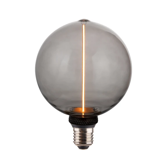 Bombilla LED globo regulable E27 Edge de 2 W, 1.800 K, ahumada Esta bombilla LED en formato G125 es ideal para aplicaciones decorativas. Está equipada con una bombilla de cristal tintado gris ahumado con una guía de luz recta de aspecto futurista en el interior. La luz blanca cálida adicional puede atenuarse si es necesario.