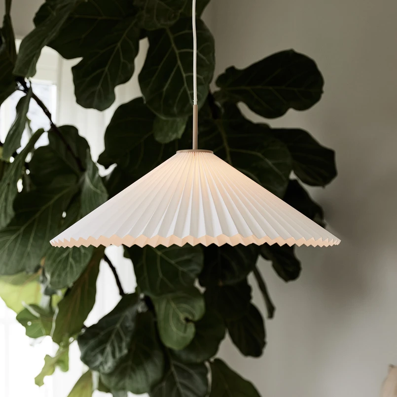 La lámpara colgante Dora de 1 luz se caracteriza por su pantalla cónica con diseño plisado, fabricada en papel.