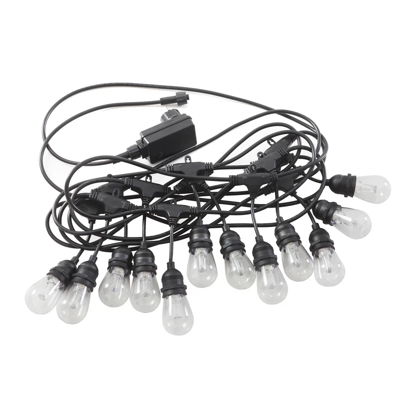 Cadena de luces LED inteligente Liezel para el patio o el jardín Para crear un ambiente armonioso en el exterior, es imprescindible contar con una iluminación de acento adecuada. Liezel es una guirnalda de luces inteligente con LED instalados de forma permanente que puede controlarse mediante la aplicación gratuita Tuya. También puede generar una iluminación sencilla en blanco cálido y tiene una función RGB para que pueda enriquecer el jardín con colores brillantes. La luz tiene un grado de protección IP65, que la hace resistente al polvo y la protege contra chorros de agua. Por este motivo, la cadena de luces LED Liezel es perfecta para su uso en exteriores. Datos técnicos / compatibilidad - Función RGB - Luz blanco cálido (3.000 K) - Controlable con la aplicación gratuita Tuya (disponible para iOS y Android)