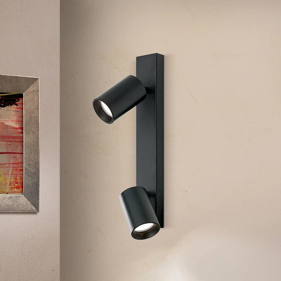Con el discreto y moderno foco de Sean, las áreas u objetos dentro de sus propias cuatro paredes pueden ser hábilmente escenificadas. Los dos puntos se pueden rotar y girar para proporcionar una iluminación dirigida y directa sin deslumbramiento, ya que las lámparas GU10 desaparecen fácilmente en el cuerpo de la luminaria. Los focos en sí tienen una forma redondeada y armonizan con el techo alargado o el montaje en la pared, que, al igual que los focos, también está diseñado en negro mate.