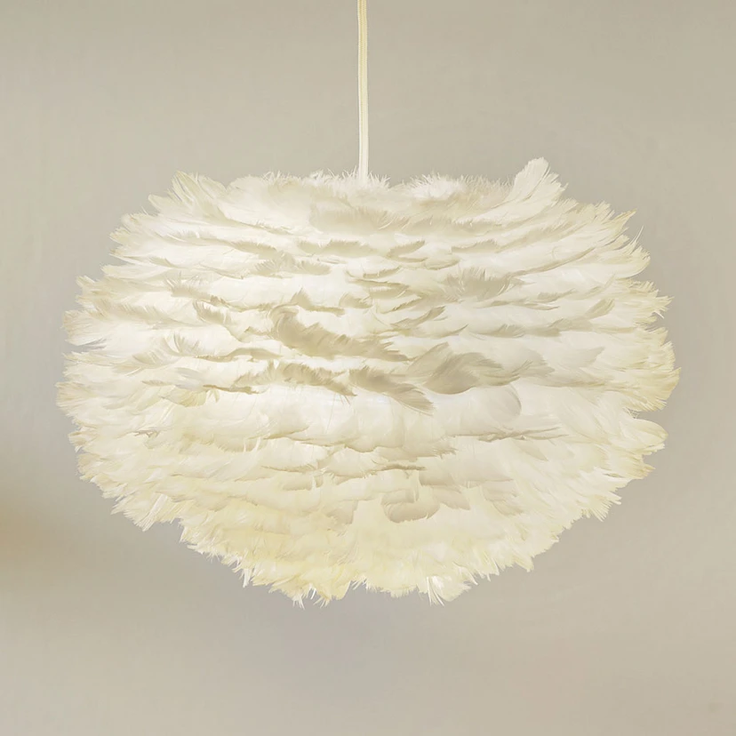 Lámpara colgante blanca Eos mediana con sombrilla de plumas de ganso