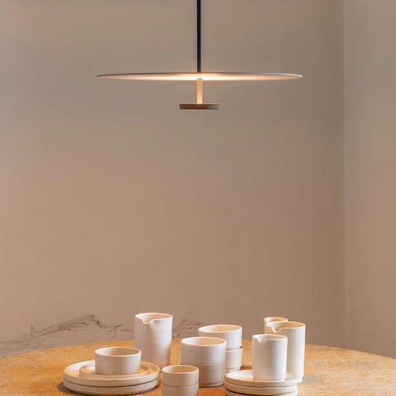 Moderna lámpara colgante LED Flat de metal y policarbonato El fabricante Vibia colabora con diversos diseñadores. El producto PREMIUM Flat es el resultado de la colaboración con Ichiro Iwasaki. Se ha prestado especial atención al uso de materiales de alta calidad. Das Ergebnis ist das Flat, aus Metal und Policarbonat, mit der höchsten Luminosität der Kolgante auf dem Disk überfließen und indirekt auf die Wohnung. El posicionamiento, el color de la luz y el elevado índice de rendimiento de color de los LED crean una iluminación suave. Lamp también puede atenuarse Via 1-10V o pulsador.